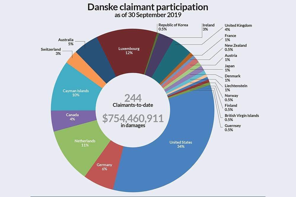 Pie chart depicting claimant participation in the Danske Bank scandal litigation.